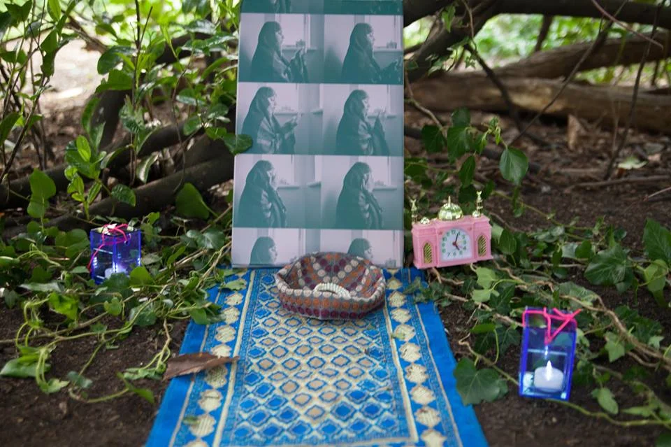 Hidden just off the cherry-blossom lined pathway, What we are doing unfolded in a shady woodland clearing. Set-up and displayed over the duration of one day, in its very essence the exhibition corresponded with Arendt’s theory as it was an act of labour in itself: almost as soon as the exhibition was set up, it was dismantled again, leaving behind no physical evidence that an exhibition had taken place here. In this regard, What we are doing felt like a brief but powerful intervention into the daily life of the park. On a regular summer Saturday, while families picnicked, friends lazed on the lawn and teams played cricket in their dazzling whites, What we are doing took over a little patch of the park but with an equally thoughtful and playful sense of purpose.
